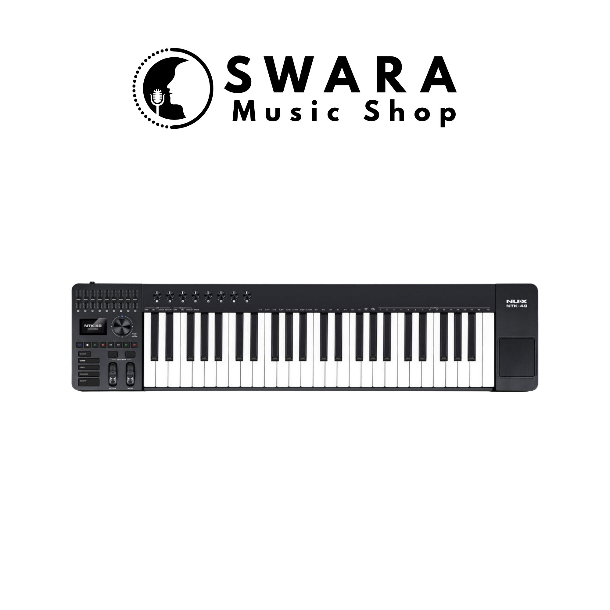 Deskripsi LengkapMidi Keyboard Controller NUX NTK49 Original menawarkan 49 kunci, 8 knob, dan 9 slider. Fungsi termasuk Aftertouch, Arpeggiator, Smart Scales, dan kurva sentuhan kunci. Kontrol DAW lengkap dan kontrol performa seperti roda Pitch Bend dan Modulasi. Dilengkapi 8+1 preset DAW dan 16 scena pengguna.
